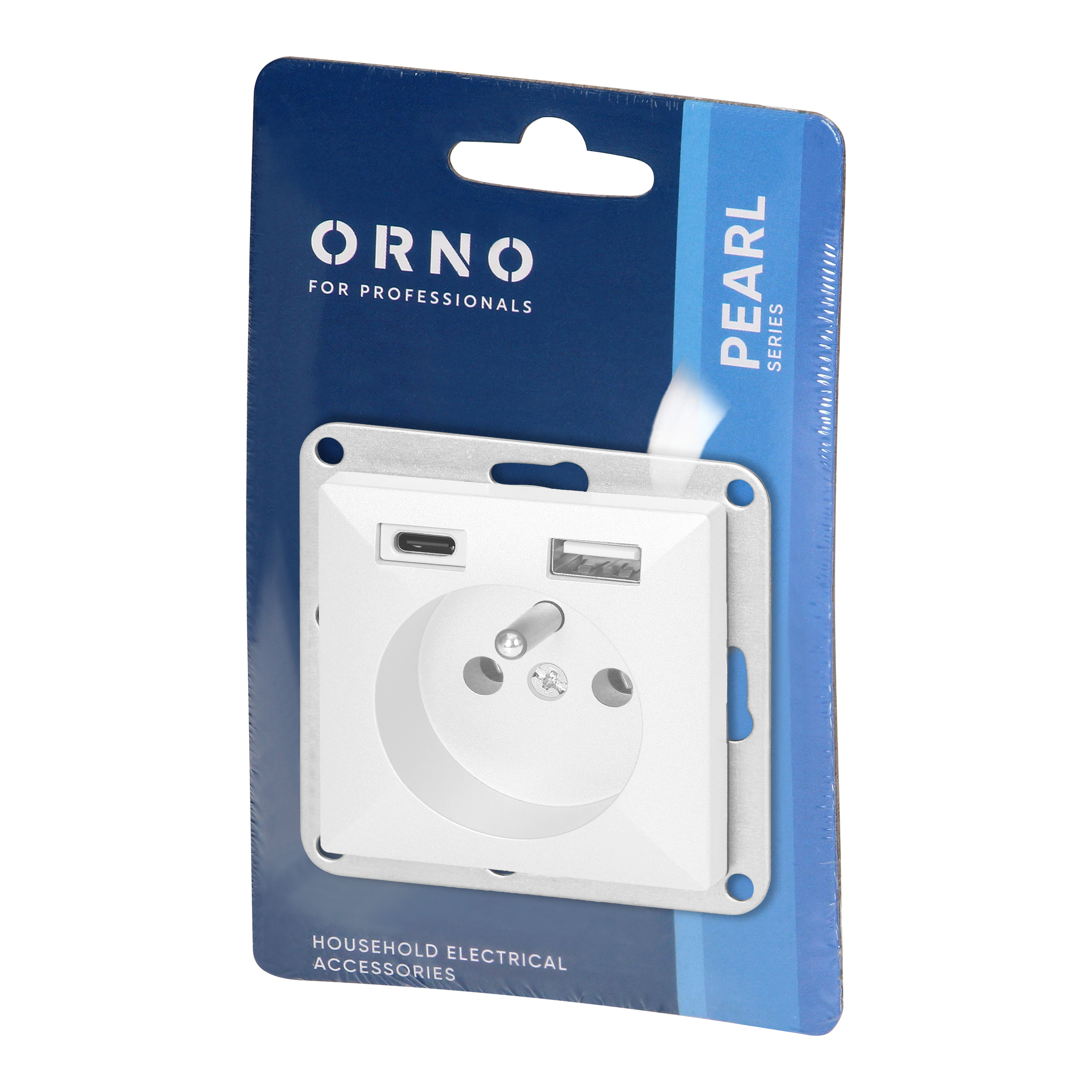 Pojedyncze gniazdo typu francuskiego, podtynkowe 2P+Z z dwoma portami USB (1xUSB-A, 1xUSB-C; napięcie znamionowe: 5V, prąd: 2,8A). Dzięki wbudowanej ładowarce USB można w łatwy sposób naładować telefon lub tablet. Należy stosować wewnątrz pomieszczeń (IP20).