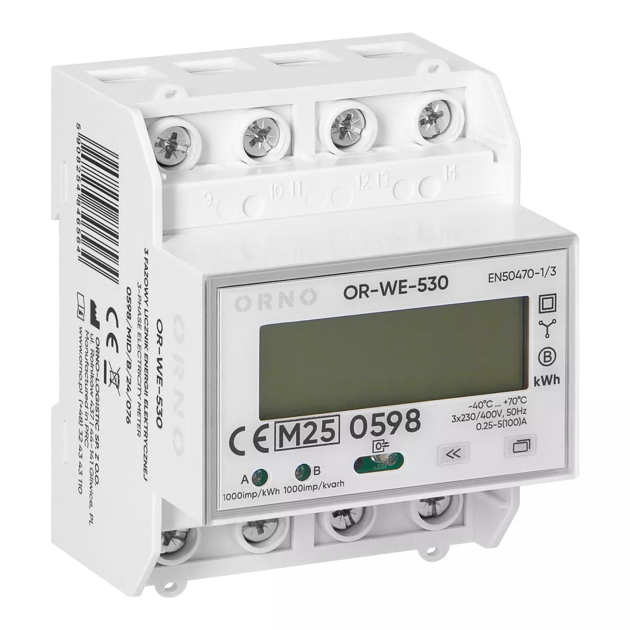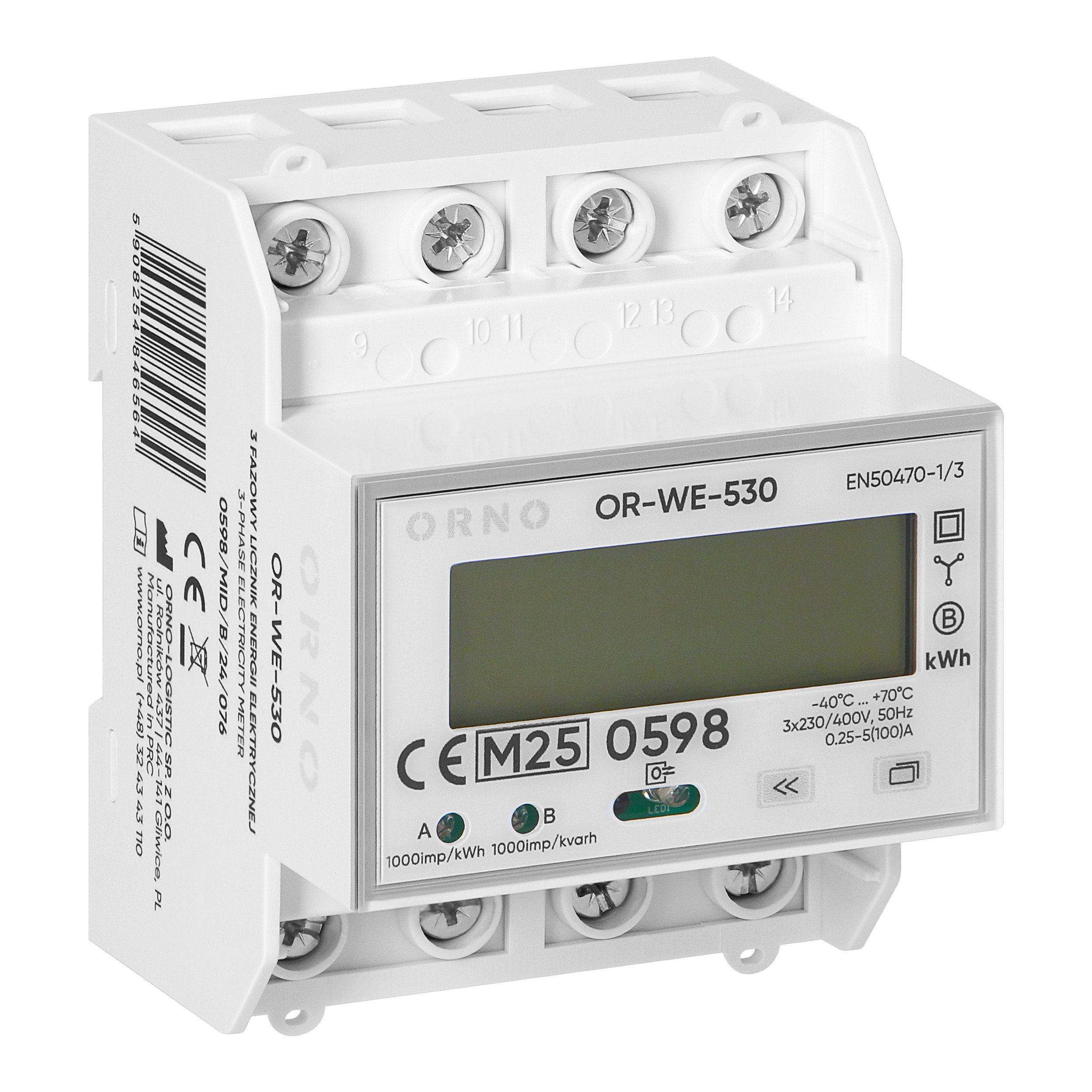 Licznik pracuje w układach o napięciu znamionowym 3x230/400V~ i częstotliwości 50/60Hz, umożliwiając bezpośredni pomiar energii bez konieczności stosowania przekładników prądowych. Urządzenie rejestruje energię czynną, bierną, pobraną i oddaną. To pozwala na kompleksowe monitorowanie przepływu energii w obie strony. Minimalny prąd pomiarowy 0,25A zapewnia wysoką czułość urządzenia nawet przy niskim obciążeniu.