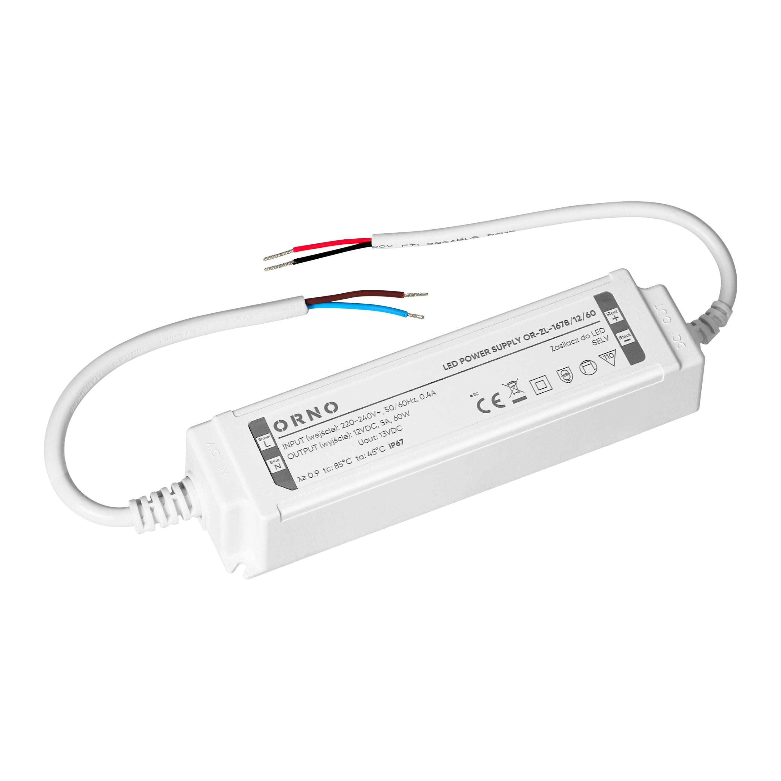 Urządzenie działa w zakresie napięcia wejściowego 220-240V i zapewnia maks. moc wyjściową 60W. Jego hermetyczna, wodoodporna obudowa wykonana z tworzywa sztucznego spełnia wymagania klasy ochrony IP67. Wysoka szczelność obudowy skutecznie chroni zasilacz przed wodą, pyłem i innymi czynnikami zewnętrznymi, co zapewnia długotrwałą i niezawodną pracę nawet w wymagającym otoczeniu, przede wszystkim dla oświetlenia zewnętrznego.