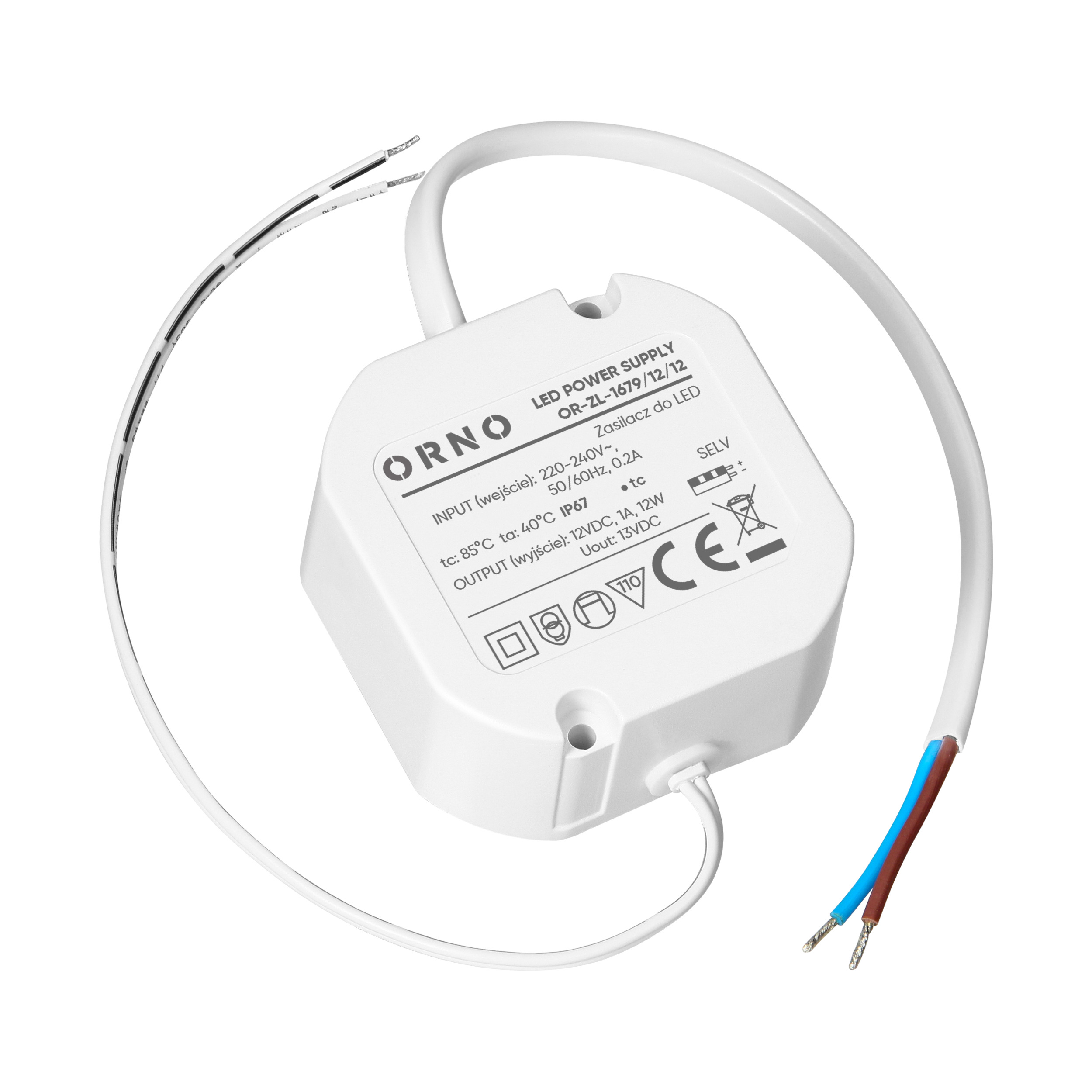 Urządzenie działa w zakresie napięcia wejściowego 220-240V i zapewnia maks. moc wyjściową 12W. Jego hermetyczna, wodoodporna obudowa wykonana z tworzywa sztucznego spełnia wymagania klasy ochrony IP67. Wysoka szczelność obudowy skutecznie chroni zasilacz przed wodą, pyłem i innymi czynnikami zewnętrznymi, co zapewnia długotrwałą i niezawodną pracę nawet w wymagającym otoczeniu, przede wszystkim dla oświetlenia zewnętrznego.