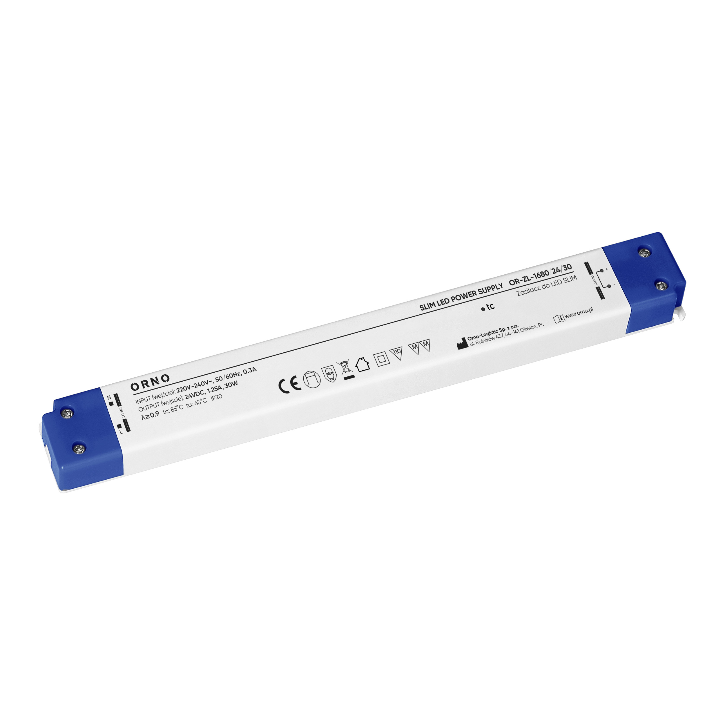 Zasilacz LED IP20, meblowy, slim, 24V, 30W, plastikowa obudowa
