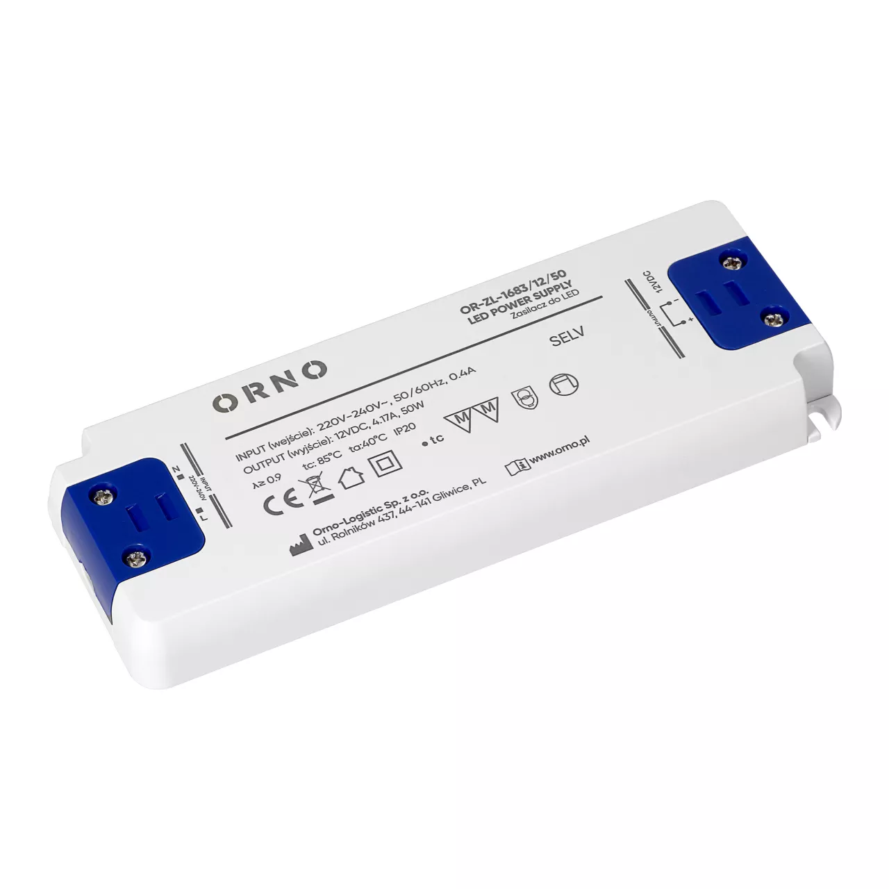 Urządzenie działa w zakresie napięcia wejściowego 220-240V i zapewnia maks. moc wyjściową 50W. Obudowa wykonana z tworzywa sztucznego posiada klasę ochrony IP20.