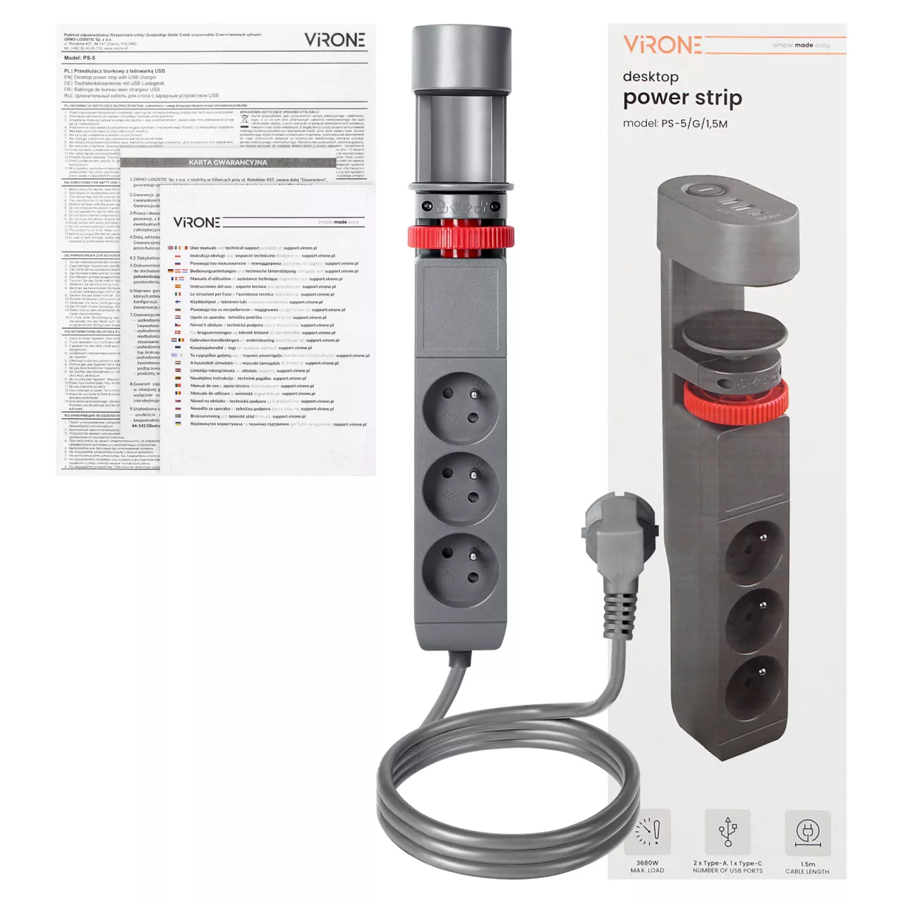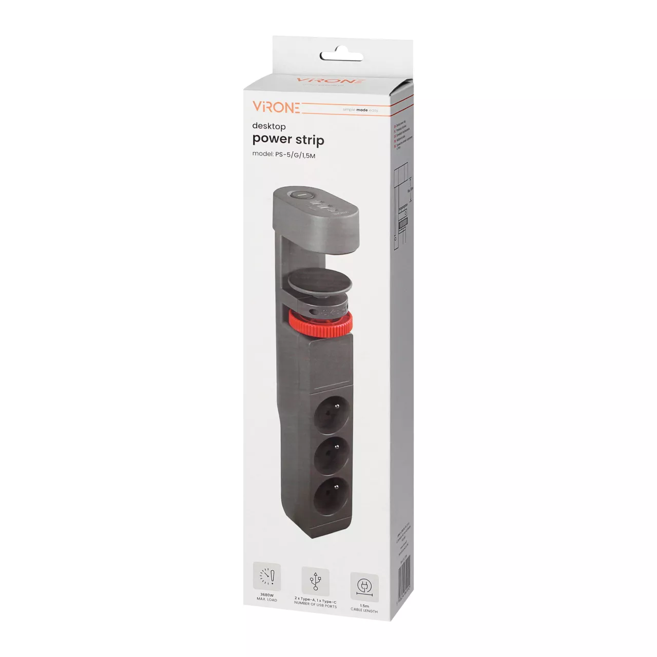 Przedłużacz biurkowy 3-krotny z ładowarką USB to funkcjonalne urządzenie elektryczne, które stanowi doskonałe rozwiązanie w miejscach, gdzie dostęp do gniazda sieciowego jest ograniczony. Swoje zastosowanie znajdzie na biurku, blacie roboczym czy w miejscach, gdzie wymagane jest jednoczesne podłączenie kilku urządzeń.