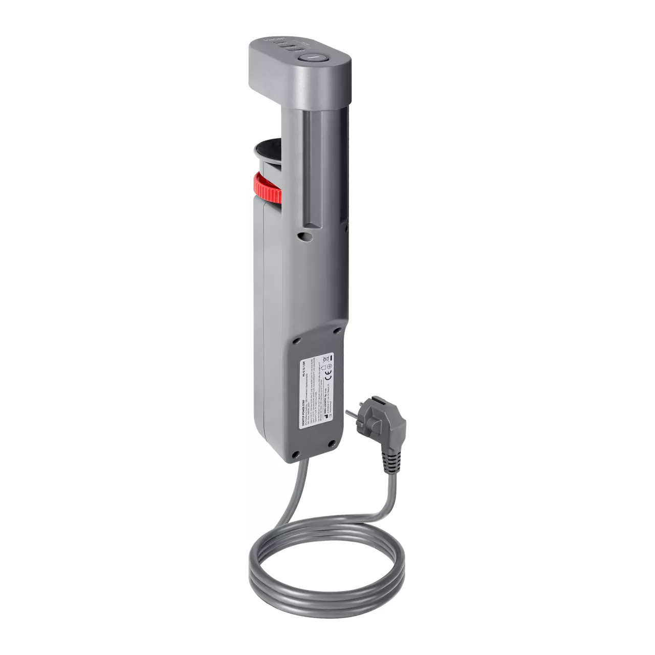 Produkt wykonany jest z wysokiej jakości tworzywa sztucznego wykończonego matową powierzchnią w kolorze szarym. Jego korpus ma prostokątny kształt, a kompaktowe wymiary (340x94x58 mm) nie zajmują dużo miejsca, dzięki czemu pozostawiają dużo przestrzeni roboczej. Przedłużacz posiada także system z kątowo obróconą wkładką centralną (45°), co ułatwia podłączanie urządzeń w trudniejszych warunkach przestrzennych. Dzięki temu, urządzenie jest łatwe w użyciu, nawet w miejscach, gdzie dostęp do gniazdek jest utrudniony.