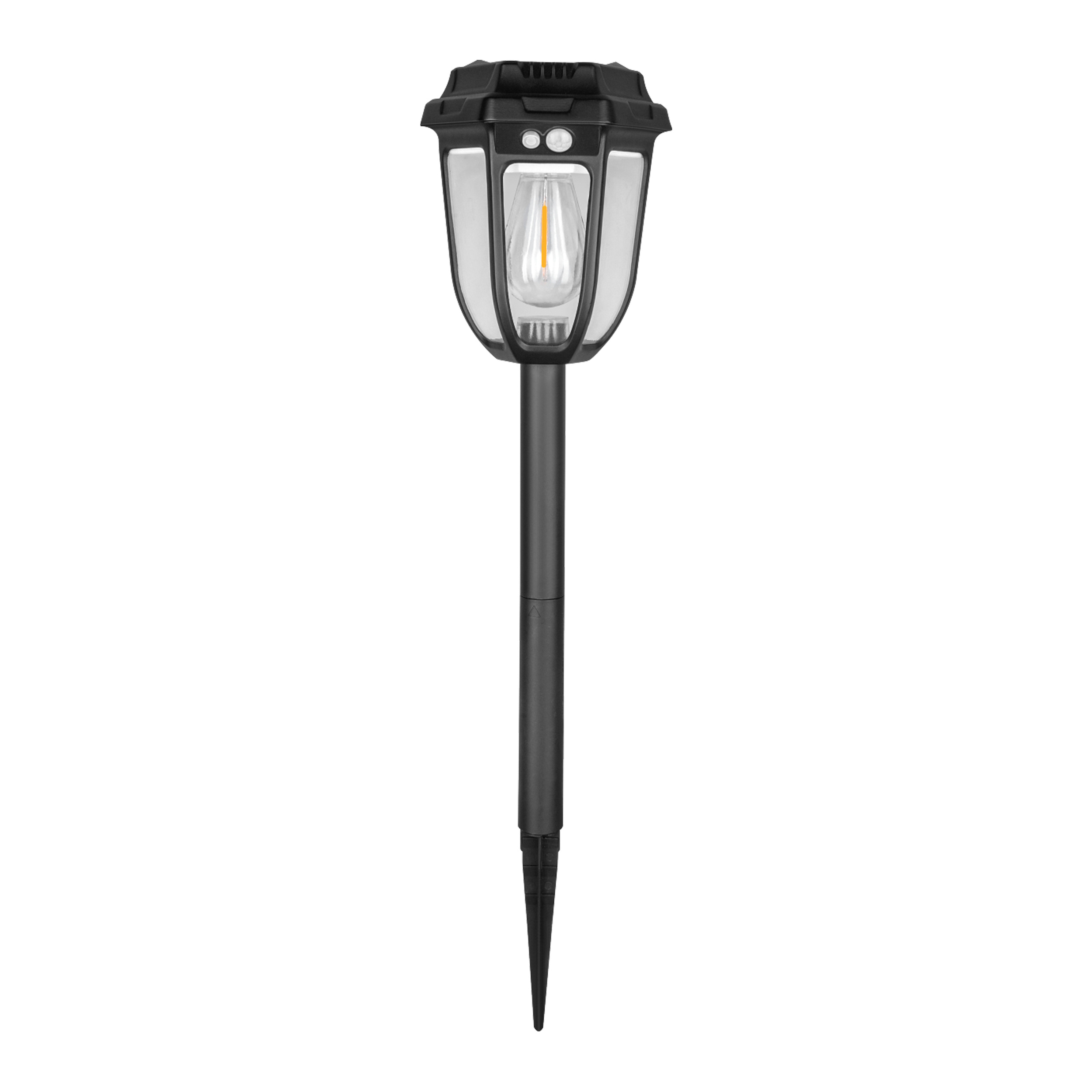 Zasilanie odbywa się z akumulatora o pojemności 1200 mAh, który w ciągu dnia ładowany jest wbudowanym panelem solarnym. Czujnik zmierzchowy odpowiada za uruchomienie lampy po zmroku, a czujnik ruchu reaguje na obecność osoby w zasięgu około 3–5 metrów.