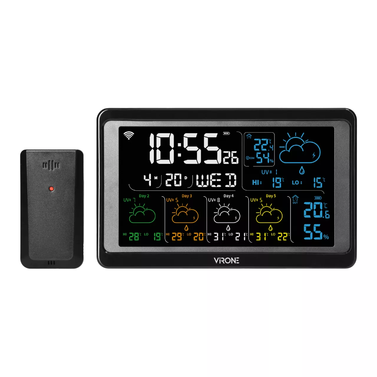 Wielofunkcyjna stacja pogodowa, bezprzewodowa, Wi-Fi, czarna