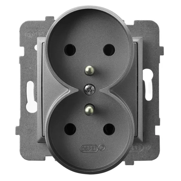 ARIA Gniazdo podwójne z uziemieniem moduł bez ramki - kolor szary mat GP-2URAZ/m/70