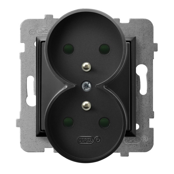 ARIA Gniazdo podwójne z uziemieniem z przesłonami torów prądowych, moduł bez ramki - kolor czarny matowy GP-2URAZP/m/33