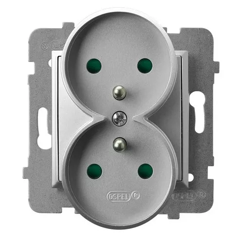 ARIA Gniazdo podwójne z uziemieniem z przesłonami torów prądowych, moduł bez ramki - kolor srebro GP-2URAZP/m/18