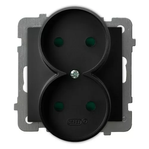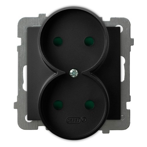 AS Gniazdo podwójne z przesłonami torów prądowych, moduł bez ramki - kolor czarny metalik GP-2GRP/m/33
