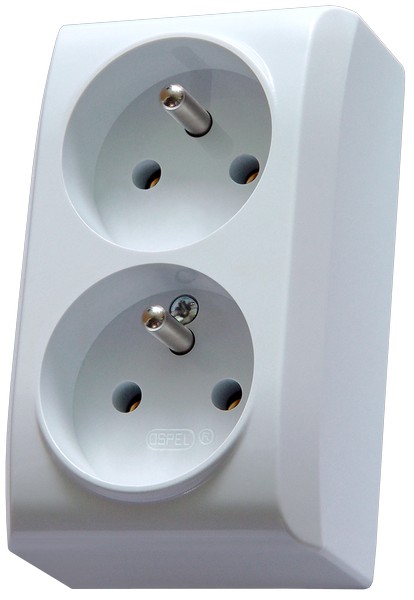 BIS Gniazdo podwójne z uziemieniem z funkcją niezamienności faz - kolor biały