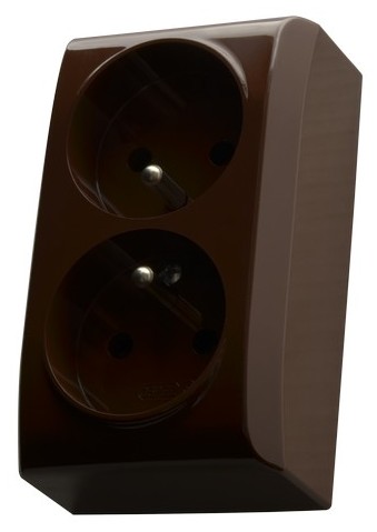 BIS Gniazdo podwójne z uziemieniem - kolor brązowy