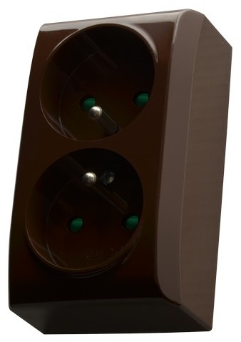BIS Gniazdo podwójne z uziemieniem z przesłonami torów prądowych - kolor brązowy