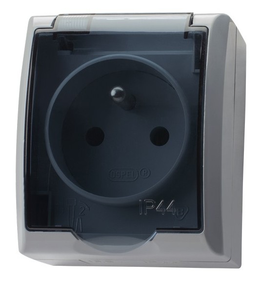FALA Gniazdo pojedyncze z uziemieniem wieczko przezroczyste - kolor popiel