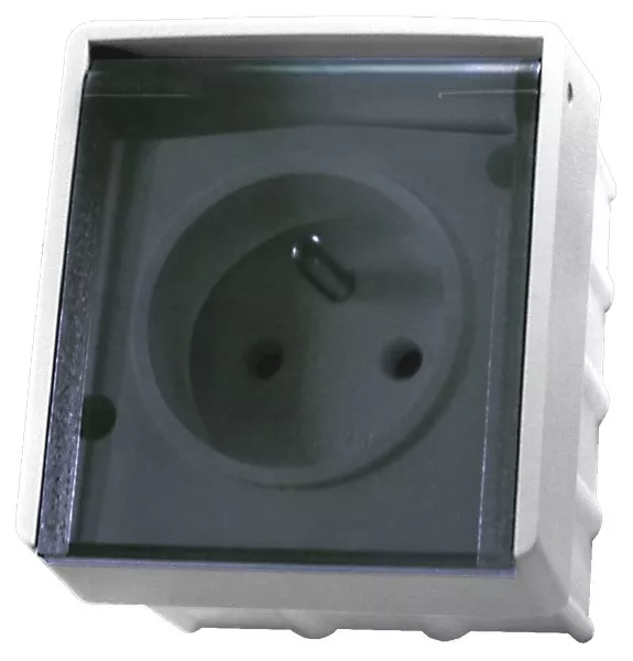 LAMBDA Gniazdo pojedyncze z uziemieniem wieczko przezroczyste - kolor biały