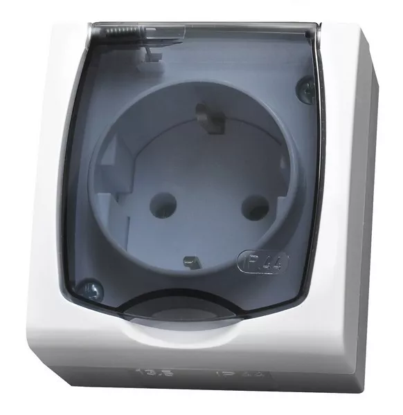 MADERA Gniazdo pojedyncze z uziemieniem schuko wieczko przezroczyste - kolor biały