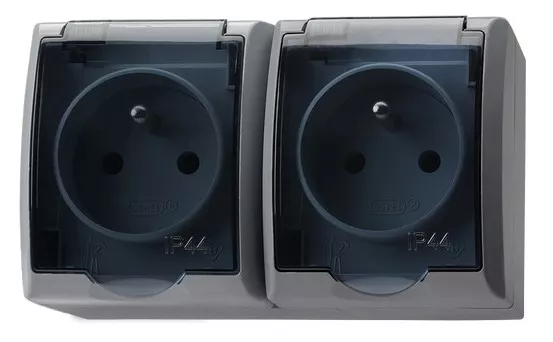 FALA Gniazdo podwójne z uziemieniem wieczko przezroczyste - kolor popiel