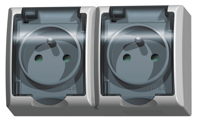 FALA Gniazdo podwójne z uziemieniem z przesłonami torów prądowych wieczko przezroczyste - kolor biały