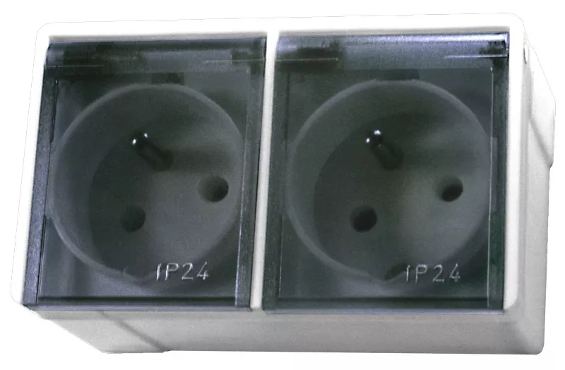 LAMBDA Gniazdo podwójne z uziemieniem wieczko przezroczyste - kolor biały