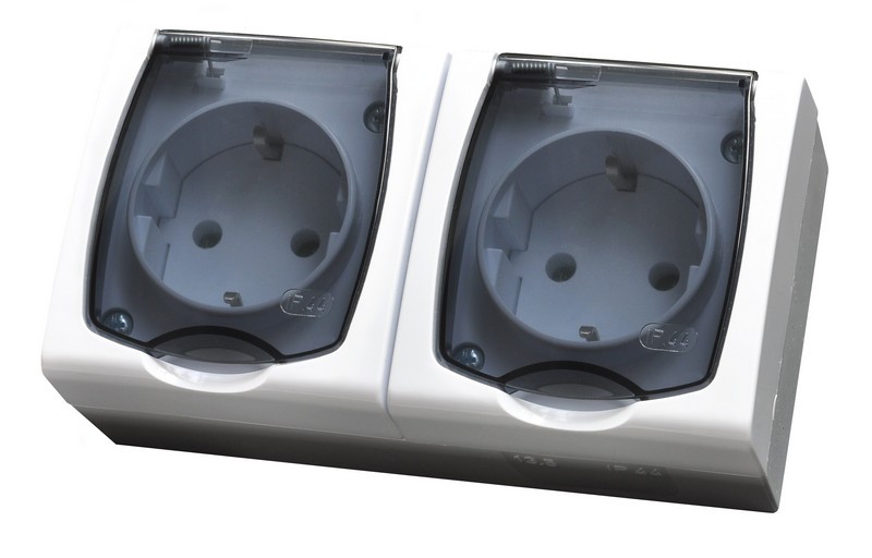 MADERA Gniazdo podwójne z uziemieniem schuko wieczko przezroczyste - kolor biały
