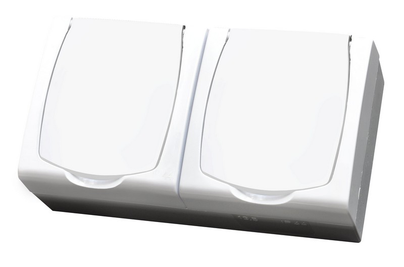 MADERA Gniazdo podwójne z uziemieniem schuko wieczko w kolorze wyrobu - kolor biały