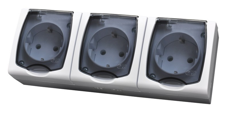 MADERA Gniazdo potrójne z uziemieniem schuko wieczko przezroczyste - kolor biały