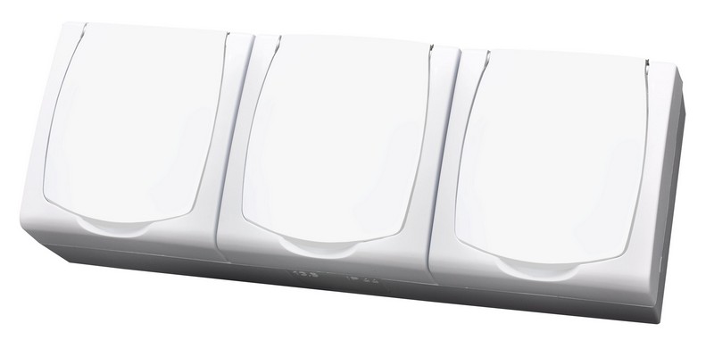 MADERA Gniazdo potrójne z uziemieniem z przesłonami torów prądowych wieczko w kolorze wyrobu - kolor biały