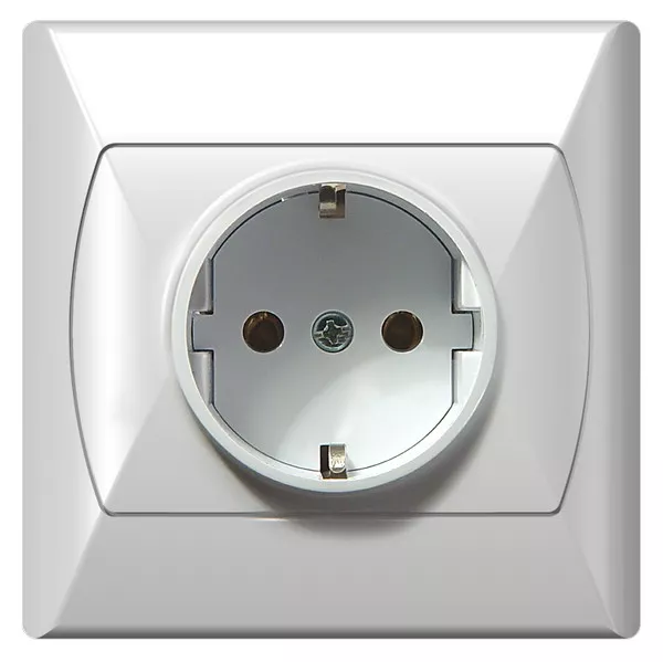 AKCENT Gniazdo pojedyncze z uziemieniem schuko - kolor biały