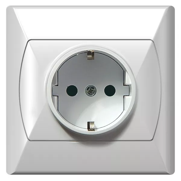 AKCENT Gniazdo pojedyncze z uziemieniem schuko z przesłonami torów prądowych - kolor biały