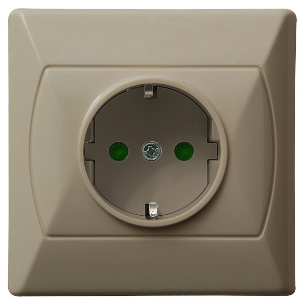 AKCENT Gniazdo pojedyncze z uziemieniem schuko z przesłonami torów prądowych - kolor beżowy
