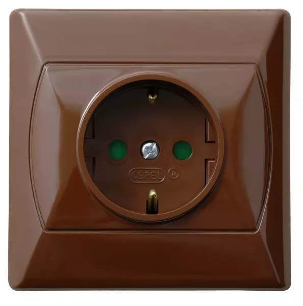 AKCENT Gniazdo pojedyncze z uziemieniem schuko z przesłonami torów prądowych - kolor brązowy