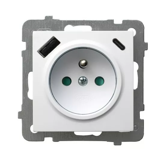 AS ANTYBAKTERYJNY Gniazdo pojedyncze z uziemieniem z przesłonami, z ładowarką USB A+C , produkt zawiera nanocząsteczki srebra - kolor biały