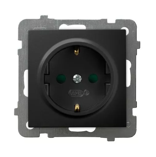AS Gniazdo pojedyncze z uziemieniem schuko z przesłonami torów prądowych - kolor czarny metalik