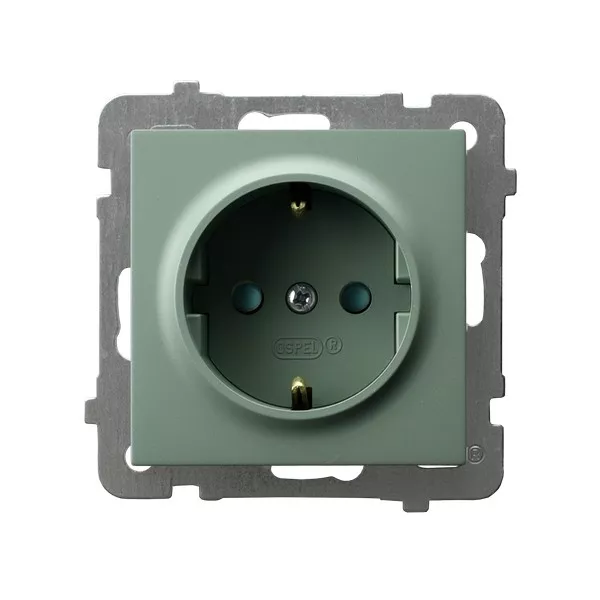 AS Gniazdo pojedyncze z uziemieniem schuko z przesłonami torów prądowych - kolor zielony mat