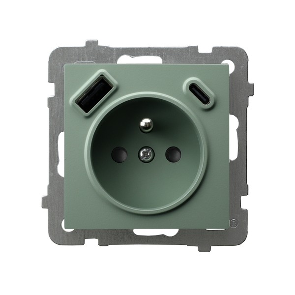 AS Gniazdo pojedyncze z uziemieniem z przesłonami torów prądowych, z ładowarką USB A+C - kolor zielony mat