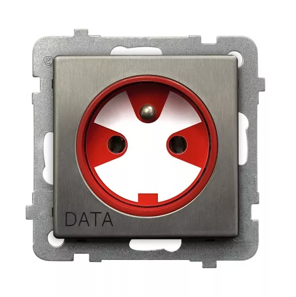 SONATA Gniazdo pojedyncze z uziemieniem DATA z kluczem uprawniającym - kolor stal inox