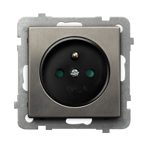 SONATA Gniazdo pojedyncze z uziemieniem z przesłonami torów prądowych - kolor stal inox