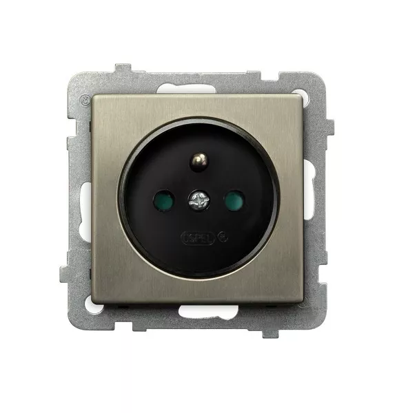 SONATA Gniazdo pojedyncze z uziemieniem z przesłonami torów prądowych - kolor nowe srebro