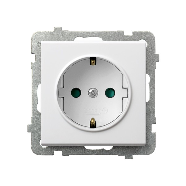 SONATA Gniazdo pojedyncze z uziemieniem schuko z przesłonami torów prądowych - kolor biały mat