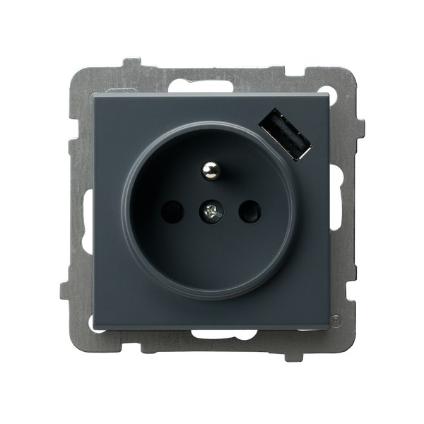 SONATA Gniazdo pojedyncze z uziemieniem z przesłonami torów prądowych, z ładowarką USB A+C - kolor szary grafit