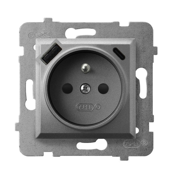 ARIA Gniazdo pojedyncze z uziemieniem z przesłonami torów prądowych, z ładowarką USB A+C - kolor szary mat
