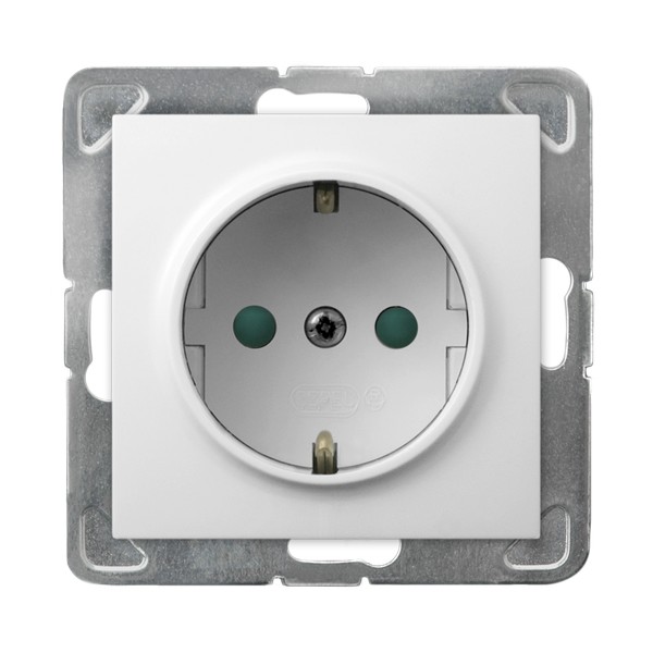 IMPRESJA Gniazdo pojedyncze z uziemieniem schuko z przesłonami torów prądowych - kolor biały