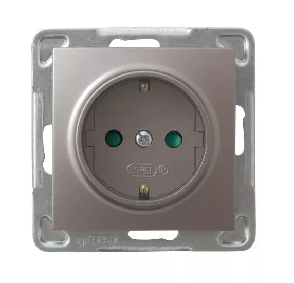 IMPRESJA Gniazdo pojedyncze z uziemieniem schuko z przesłonami torów prądowych - kolor tytan