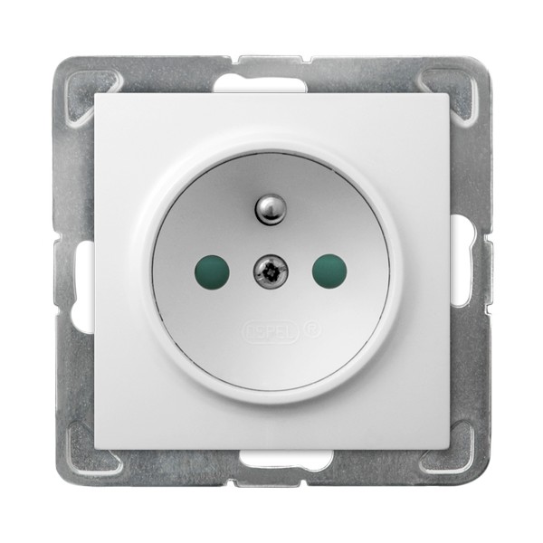 IMPRESJA Gniazdo pojedyncze z uziemieniem z przesłonami torów prądowych - kolor biały