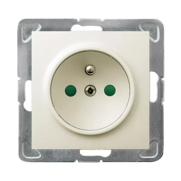 IMPRESJA Gniazdo pojedyncze z uziemieniem z przesłonami torów prądowych - kolor ecru