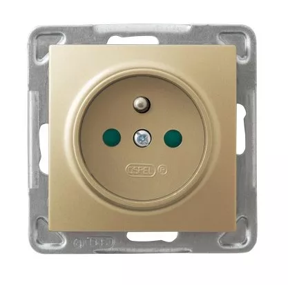 IMPRESJA Gniazdo pojedyncze z uziemieniem z przesłonami torów prądowych - kolor złoty metalik