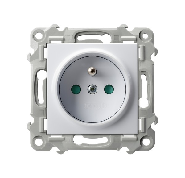 SZAFIR Gniazdo pojedyncze z uziemieniem z przesłonami torów prądowych - kolor biały