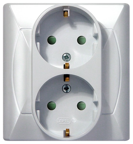 AKCENT Gniazdo podwójne z uziemieniem schuko z przesłonami torów prądowych - kolor biały