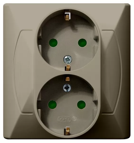 AKCENT Gniazdo podwójne z uziemieniem schuko z przesłonami torów prądowych - kolor beżowy