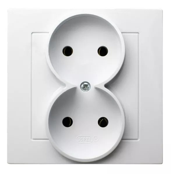 AS Gniazdo podwójne kompletne z ramką - kolor biały
